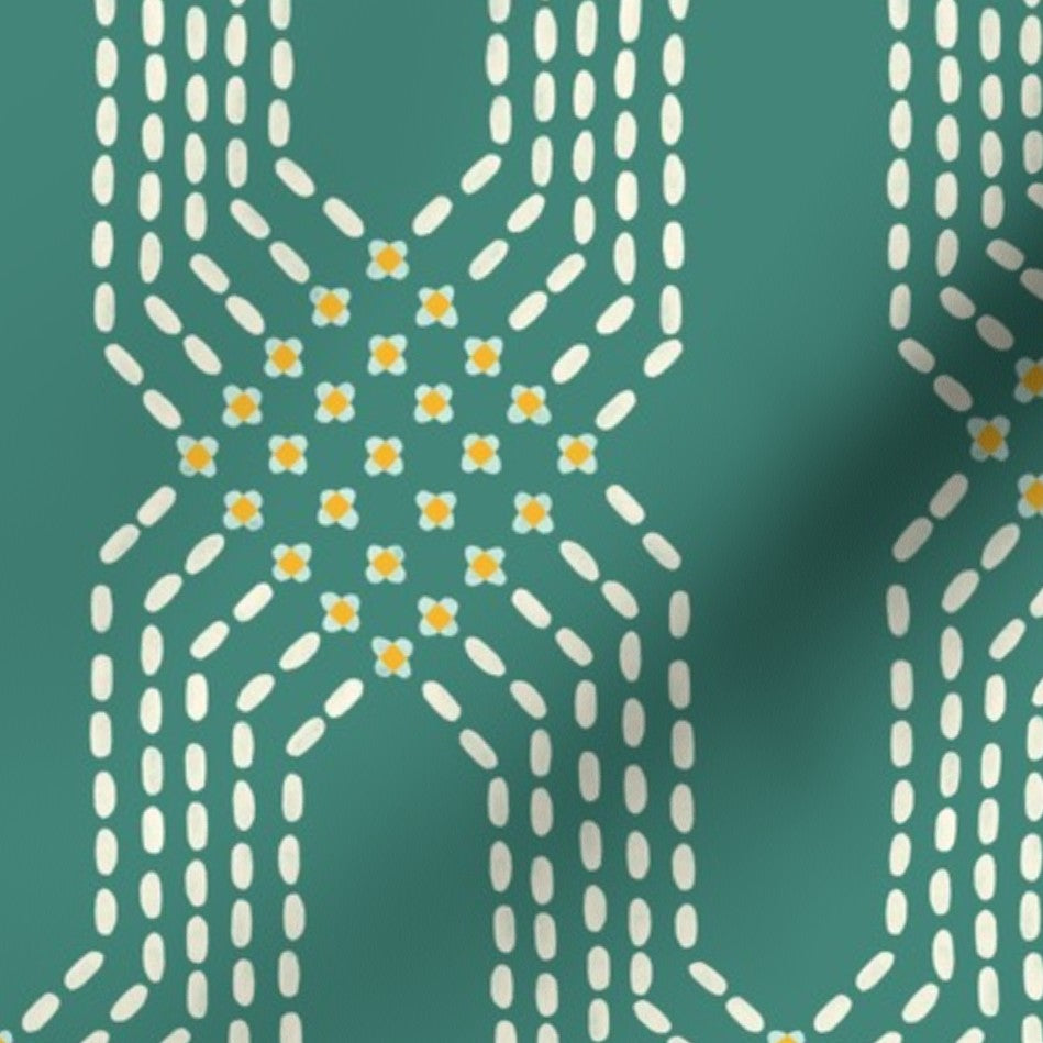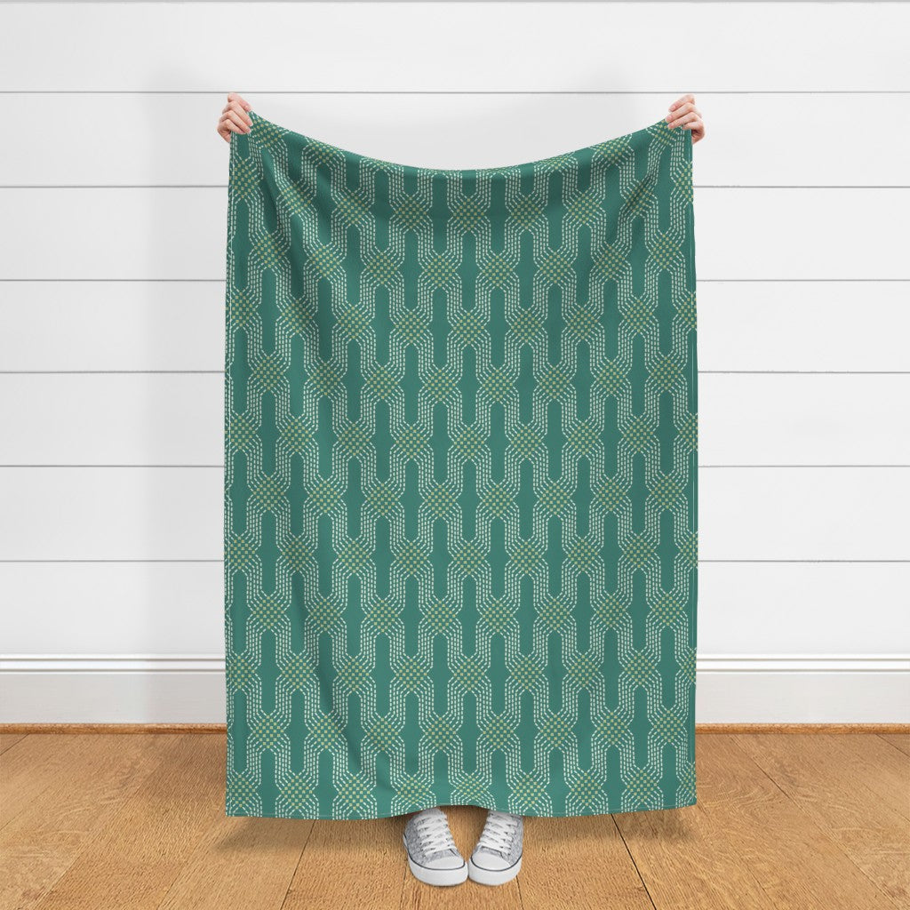 A large scale geometric design loosely inspired by sashiko stitching and embroidery. The large scale is perfect for home decor items such as pillows, curtains and bedding.