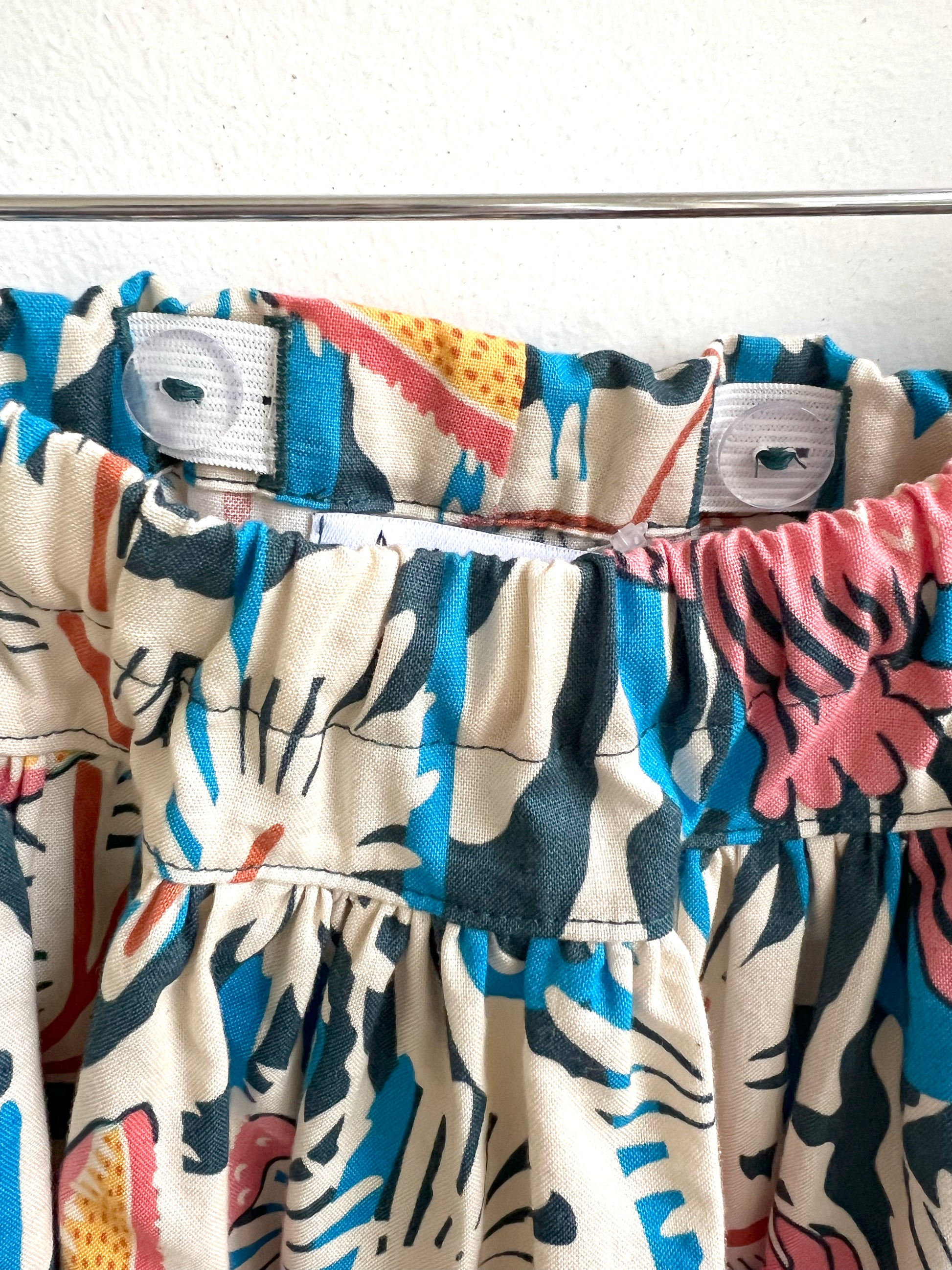 The title says it all; a favorite everday twirl skirt for those little girls (and you know who I'm talking about) who won't wear anything else. These skirts are simple enough for everyday wear, but come with the details and craftsmanship that you expect from little girl Pearl. Each skirt has a dropped waist with buttonhole elastic for a perfect fit, either big or small, a twirly skirt for the discerning twirler, and a contrasting hem band with a little extra trim detail. All seams are professionally serged and finished. This skirt is available in size 4.