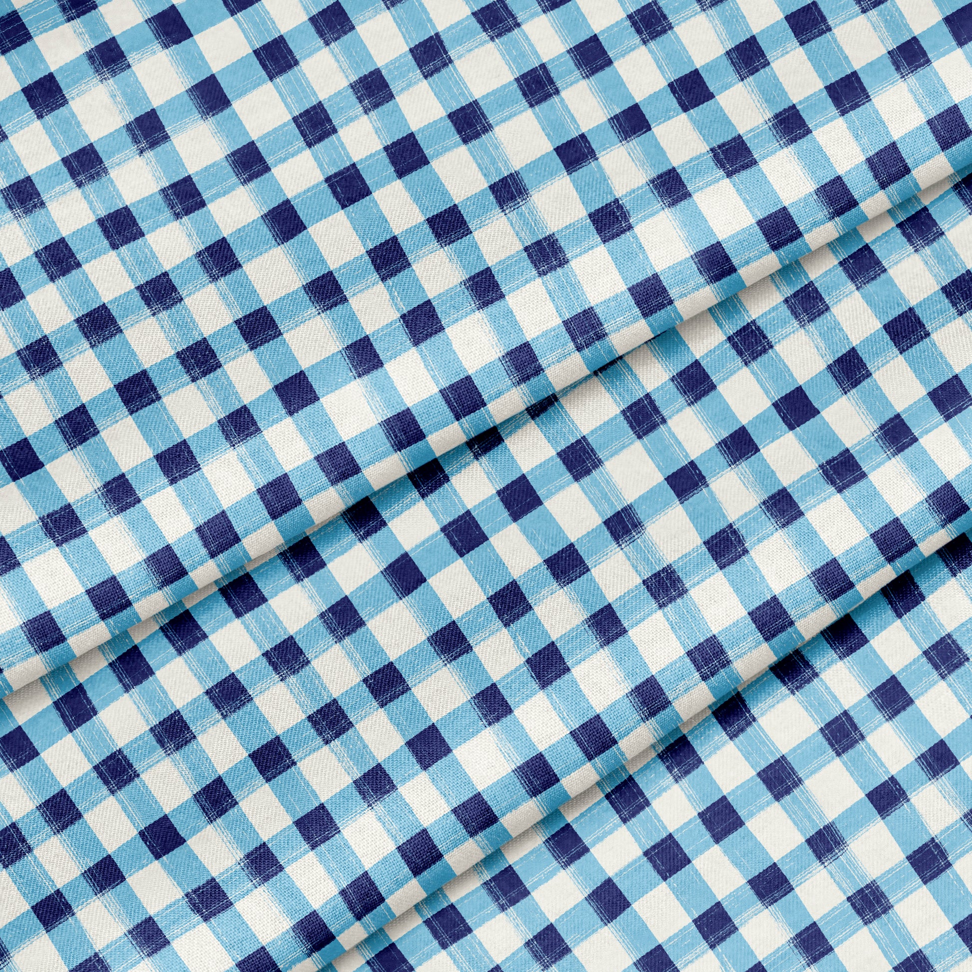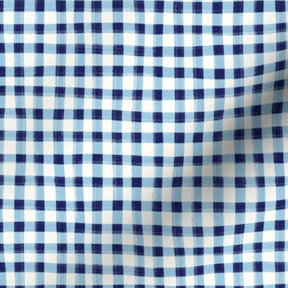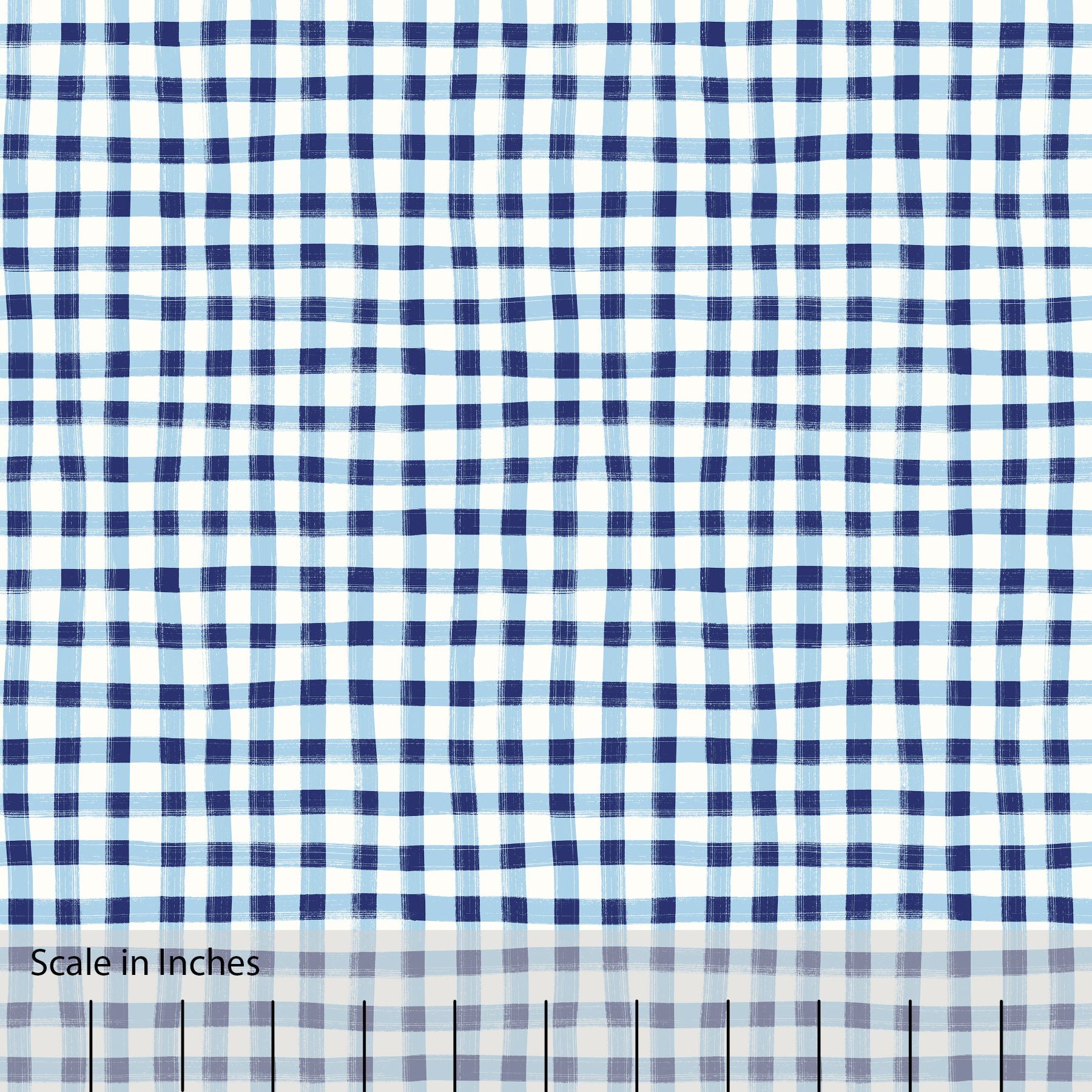 Hand Painted Gingham Fabric by the Yard Cobalt Blue
