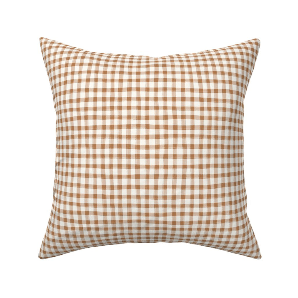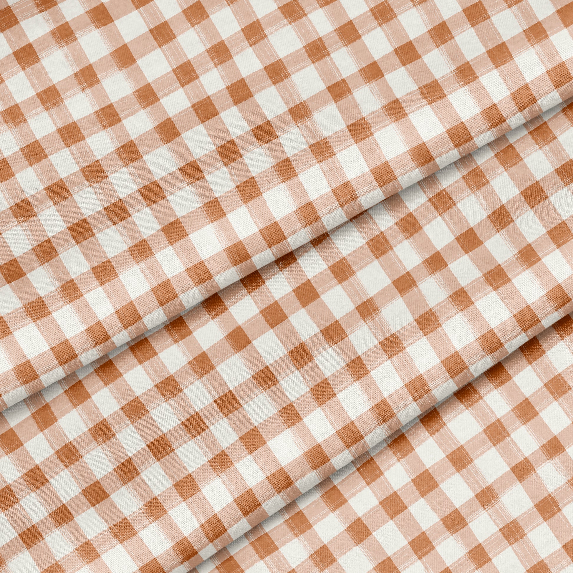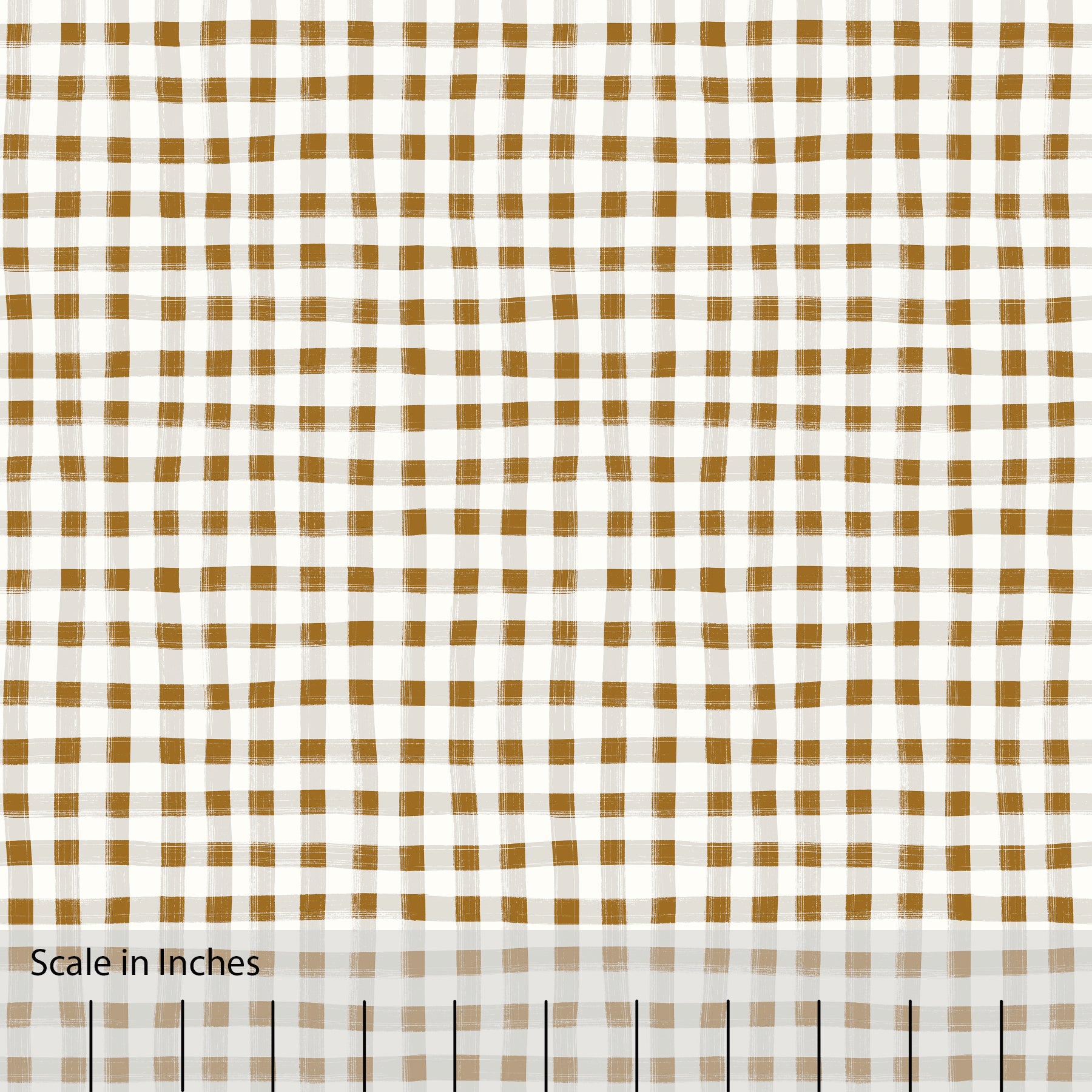 Hand Painted Gingham Fabric by the Yard Cinnamon Brown