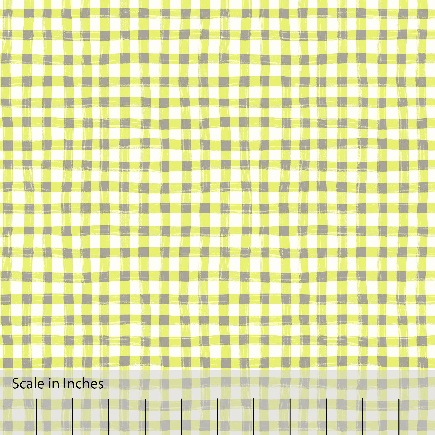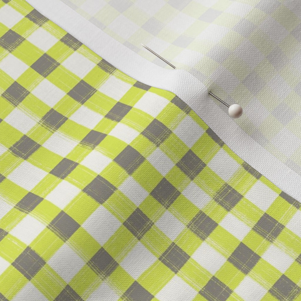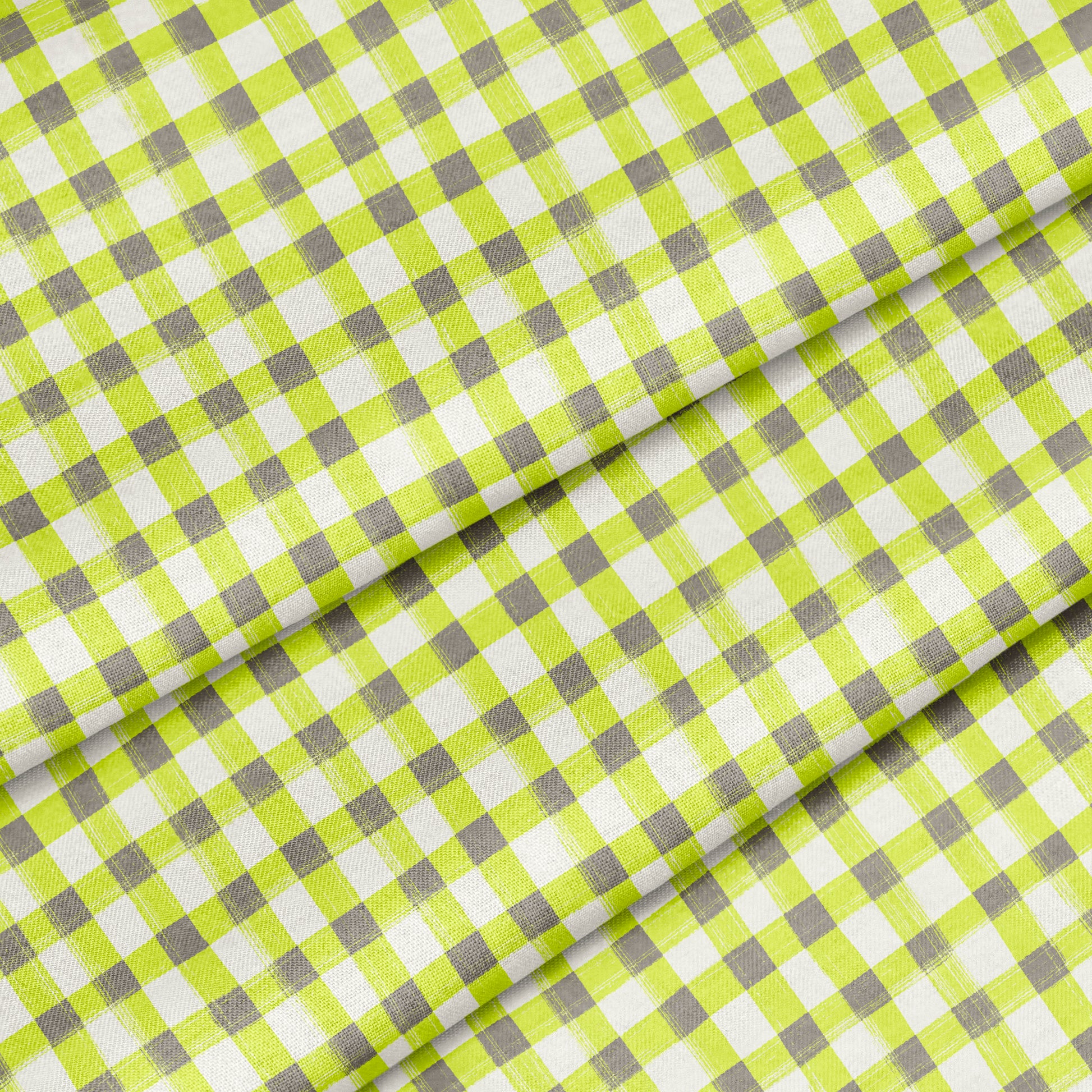 Hand Painted Gingham Fabric by the Yard Neon Green and Gray