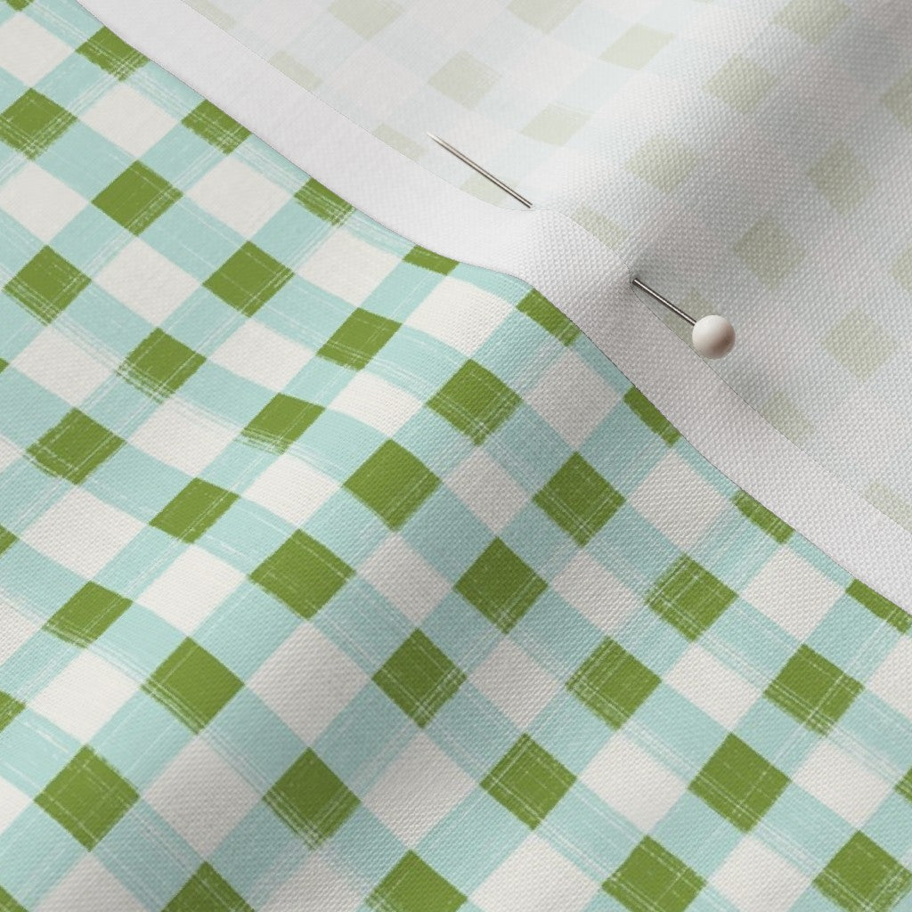 Hand Painted Gingham Fabric by the Yard Olive Green
