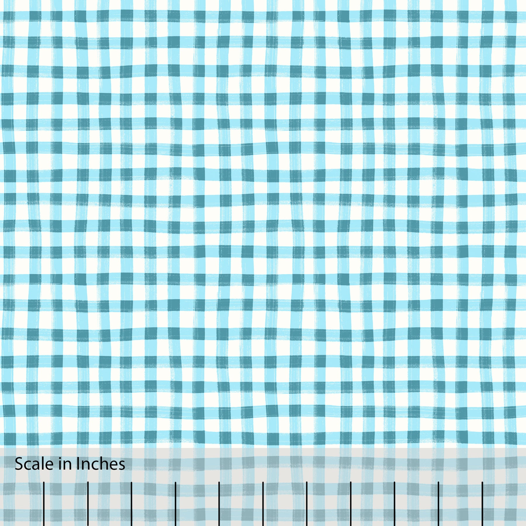 Hand Painted Gingham Fabric by the Yard Turquoise Blue