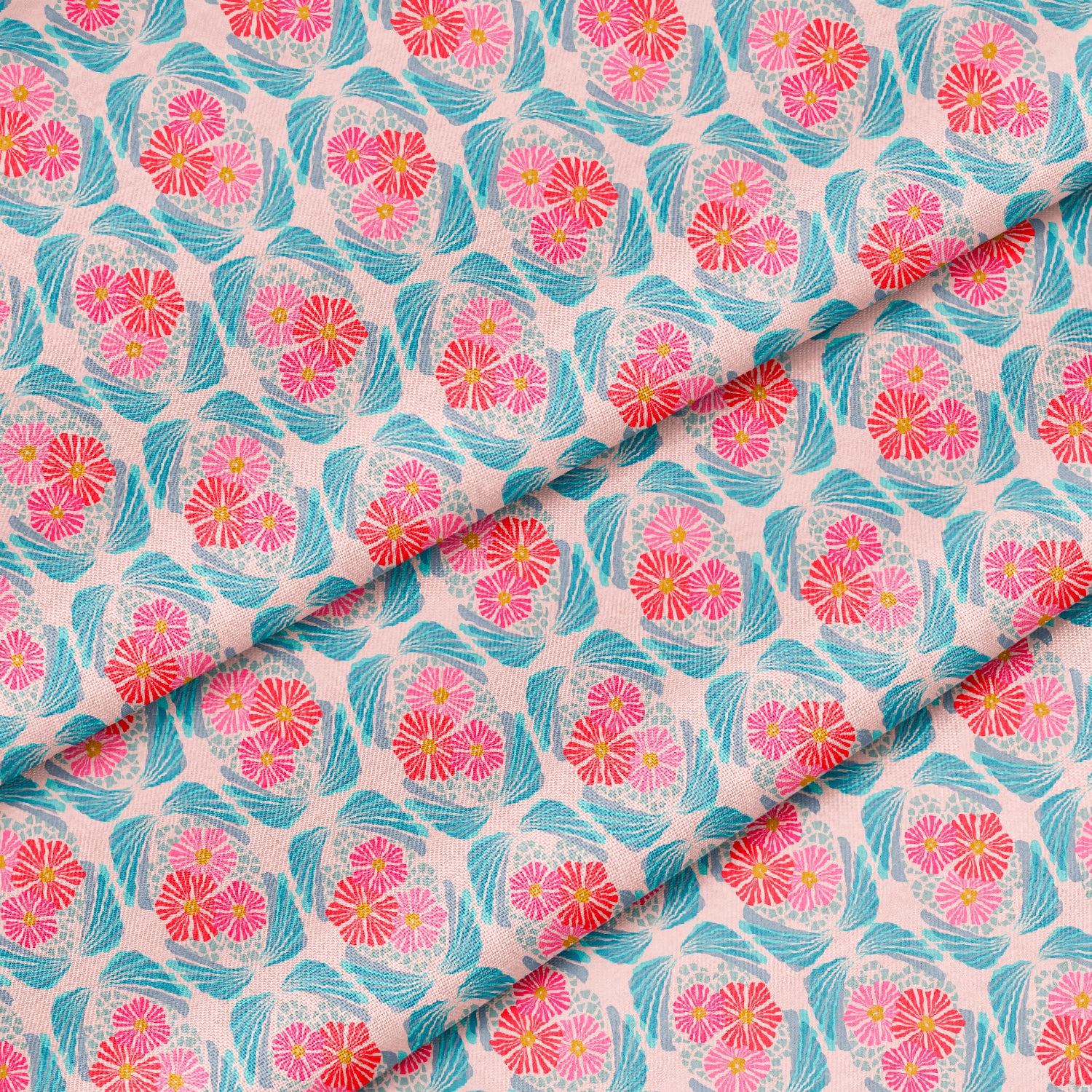 Modern Art Deco Floral Soft Pink and Blue